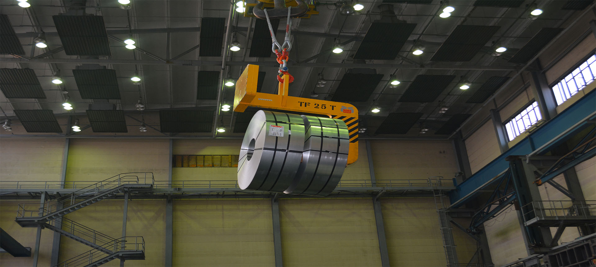 Coil-und Maschinenlager für Stückgewichte bis 90 Tonnen auf circa 3000 Quadratmetern gedeckter Fläche.
